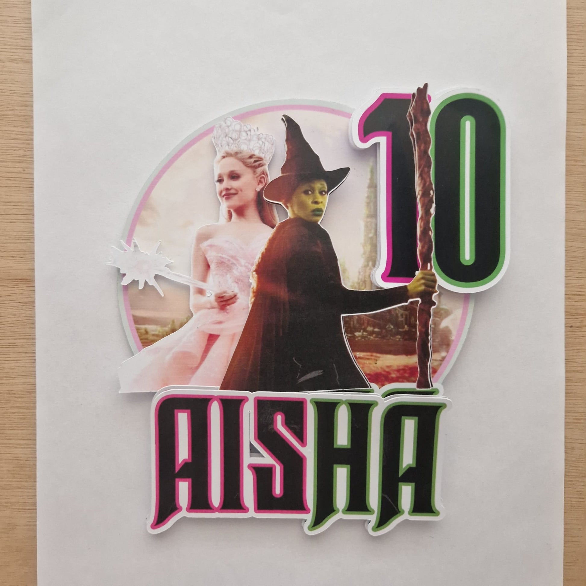 1 x Custom Wicked-themed cake topper (green & pink layered)